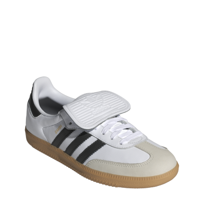 Lace up in legendary style. These adidas Samba LT shoes bring a retro sport vibe to your everyday style. Once an indoor soccer sneaker, now a streetwear staple, this version makes a striking statement with an oversized soccer-inspired tongue. Crafted in premium leather with a sleek nubuck toe, they lend a sophisticated edge to everything from denim to joggers. A rubber outsole provides lightweight traction and classic good looks.